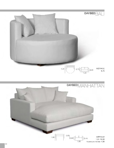DAYBED BALI 1,20 0,70 MÉTRAGE 0,44 6,75 1,20 DAYBED MANHATTAN SIÈGE ZURICH À LA PAGE 89 SIÈGES 0,85 1,60 0,60 MÉTRAGE 0,43 1,65: 16,00 1,60 Housses pour les bras: 1,50 68